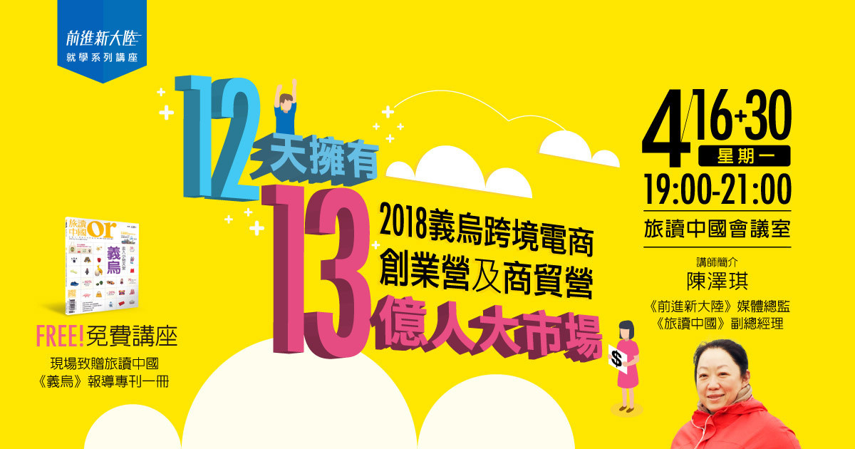 【免費講座】12天擁有13億人大市場—2018義烏跨境電商創業營及商貿營