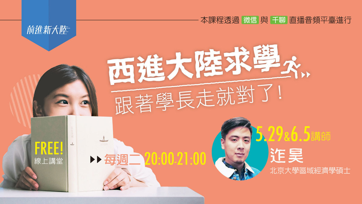 目前就讀北大區域經濟學碩士的迮昊學長,將於5/29+6/5分享這一年多在北大就讀的體驗,若你渴望瞭解牛人的世界,一定不能錯過這兩週的分享!