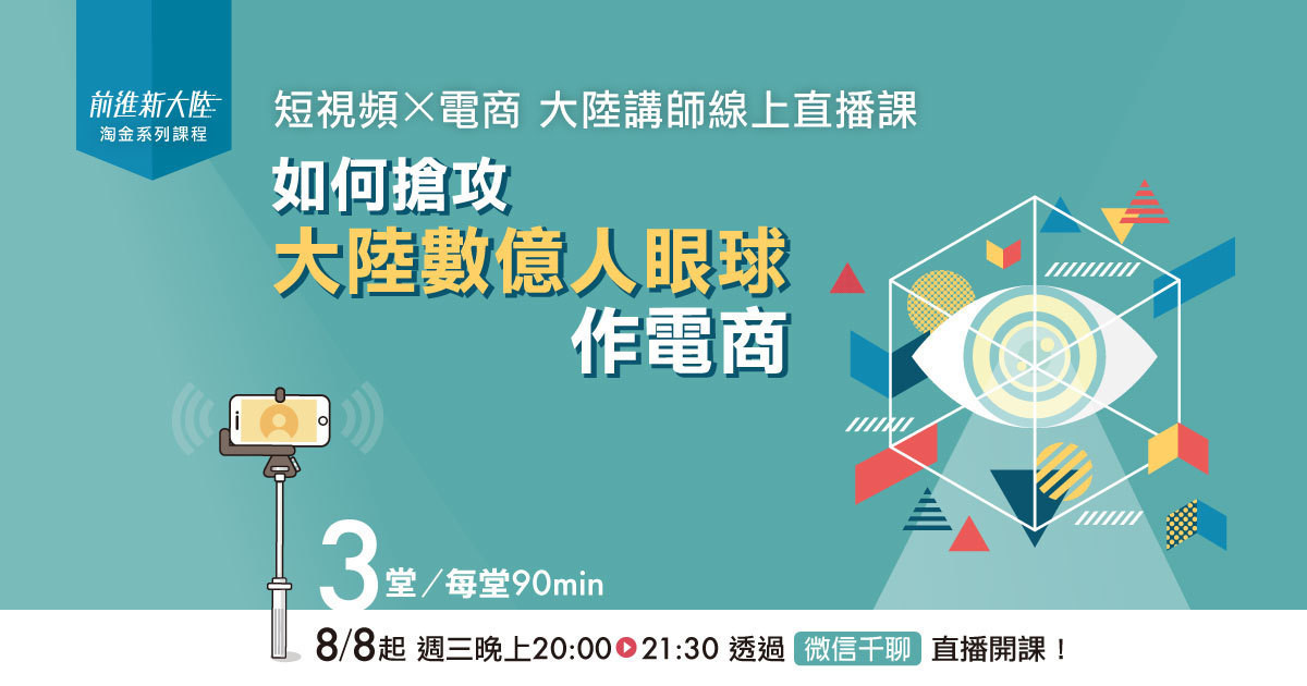 ■課程完全針對台灣需要規劃,進入大陸熱門短視頻與電商市場關鍵的系列直播線上課